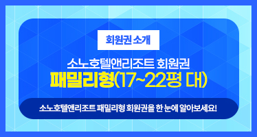 소노호텔앤리조트 콘도회원권 중, 4인가족 이하 대비 초가성비 실속형회원권인 패밀리형 안내입니다.